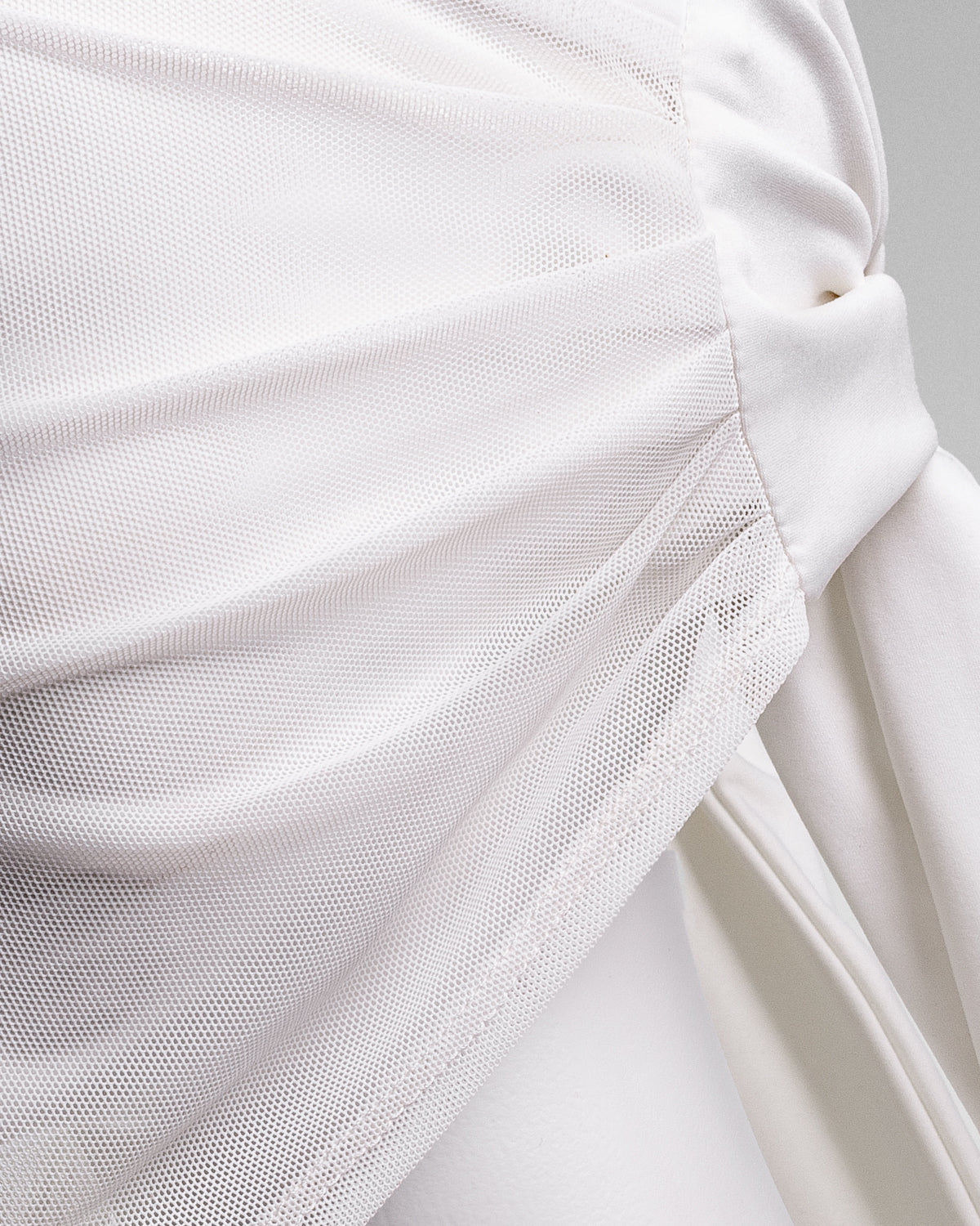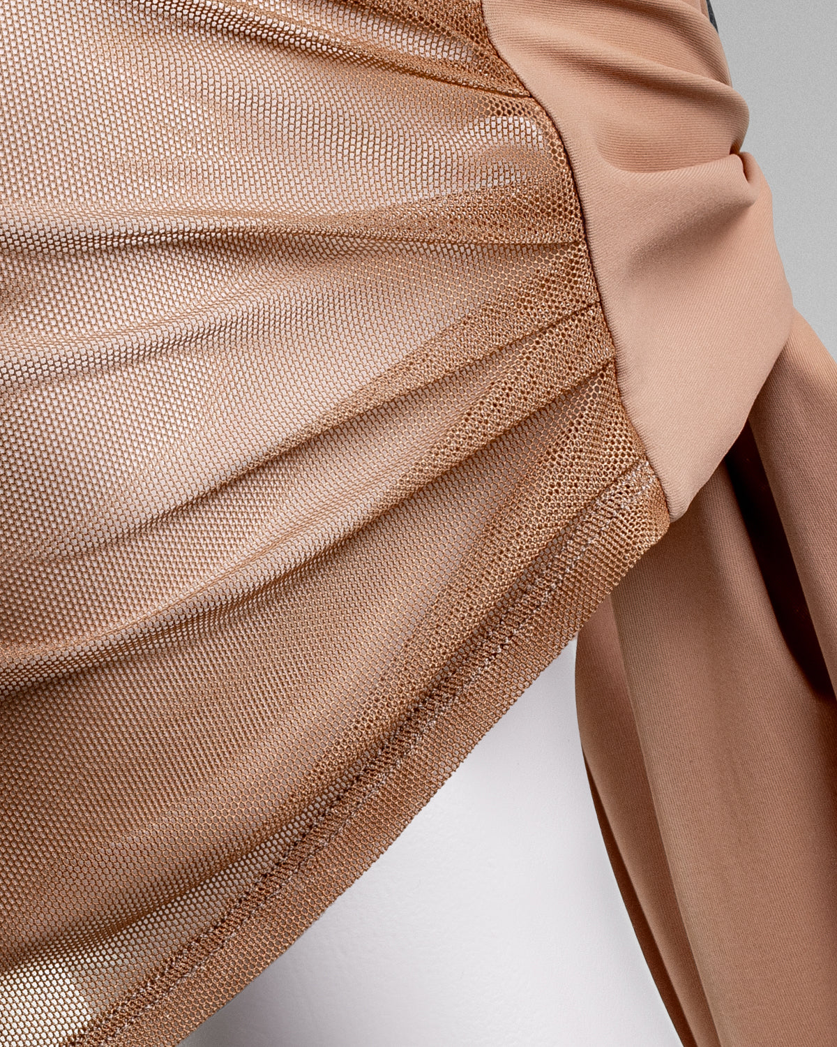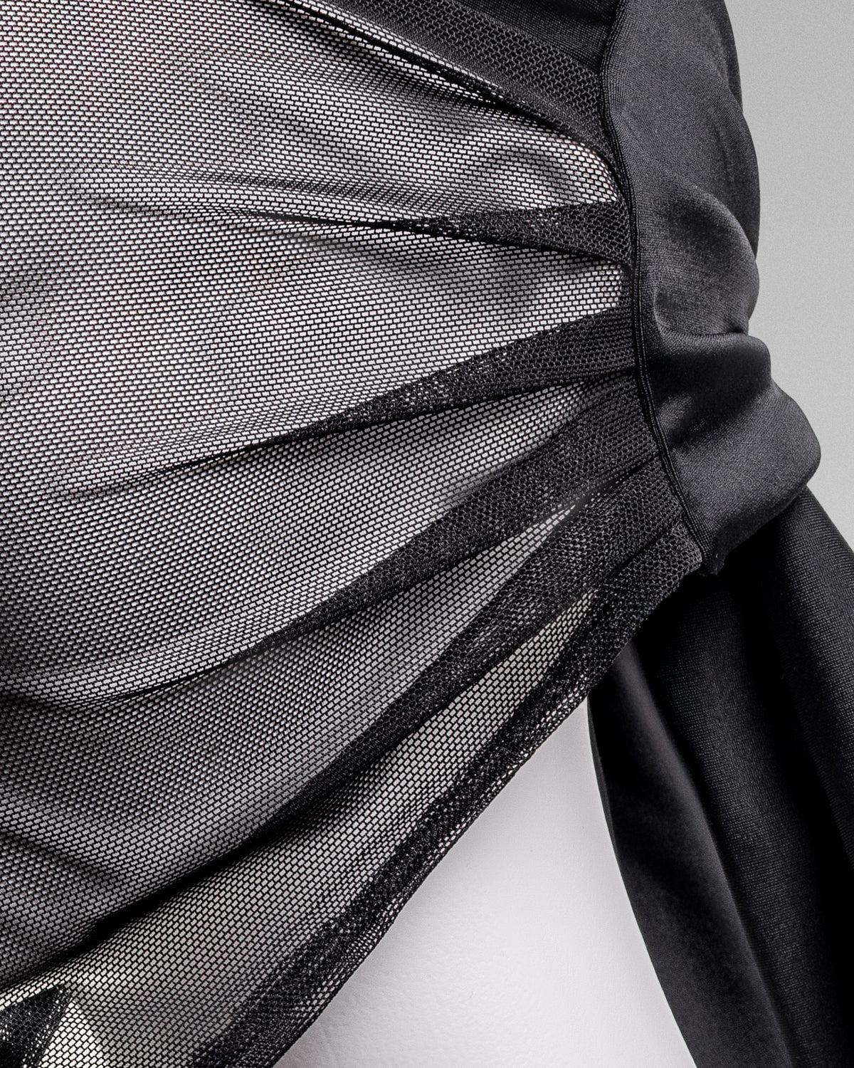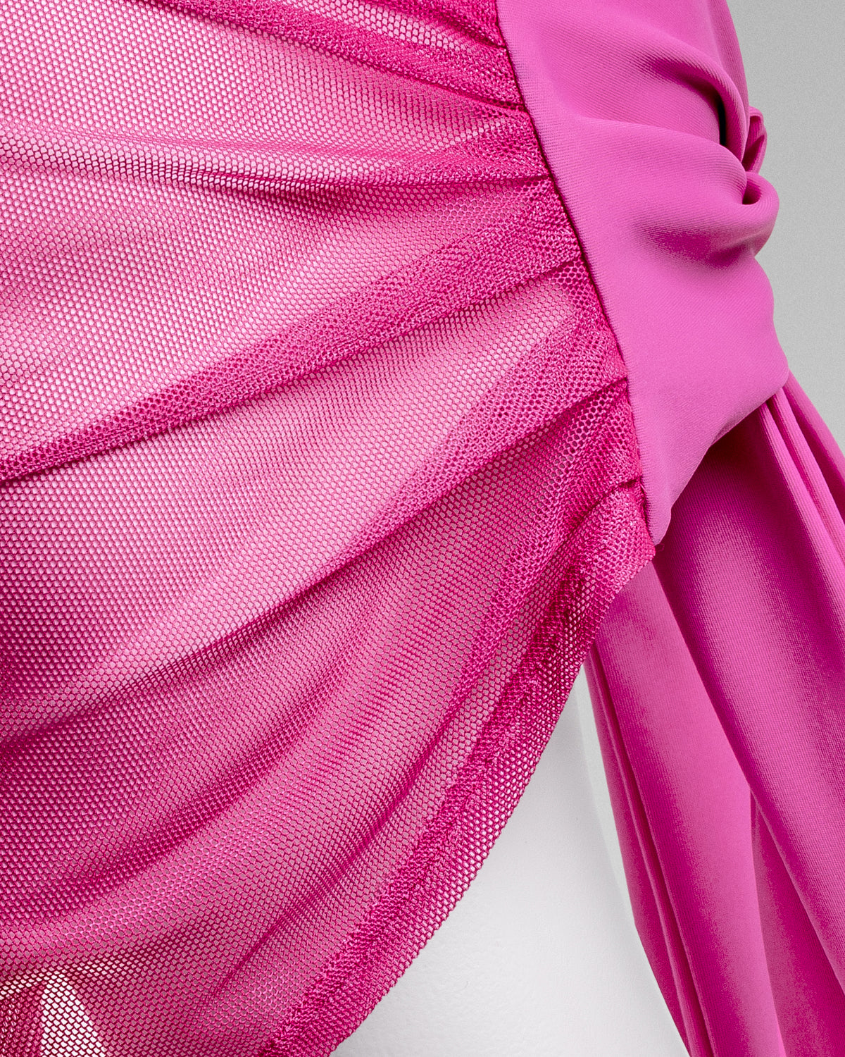 a sheer mesh fabric with a sumptuous jersey makes for a chic,